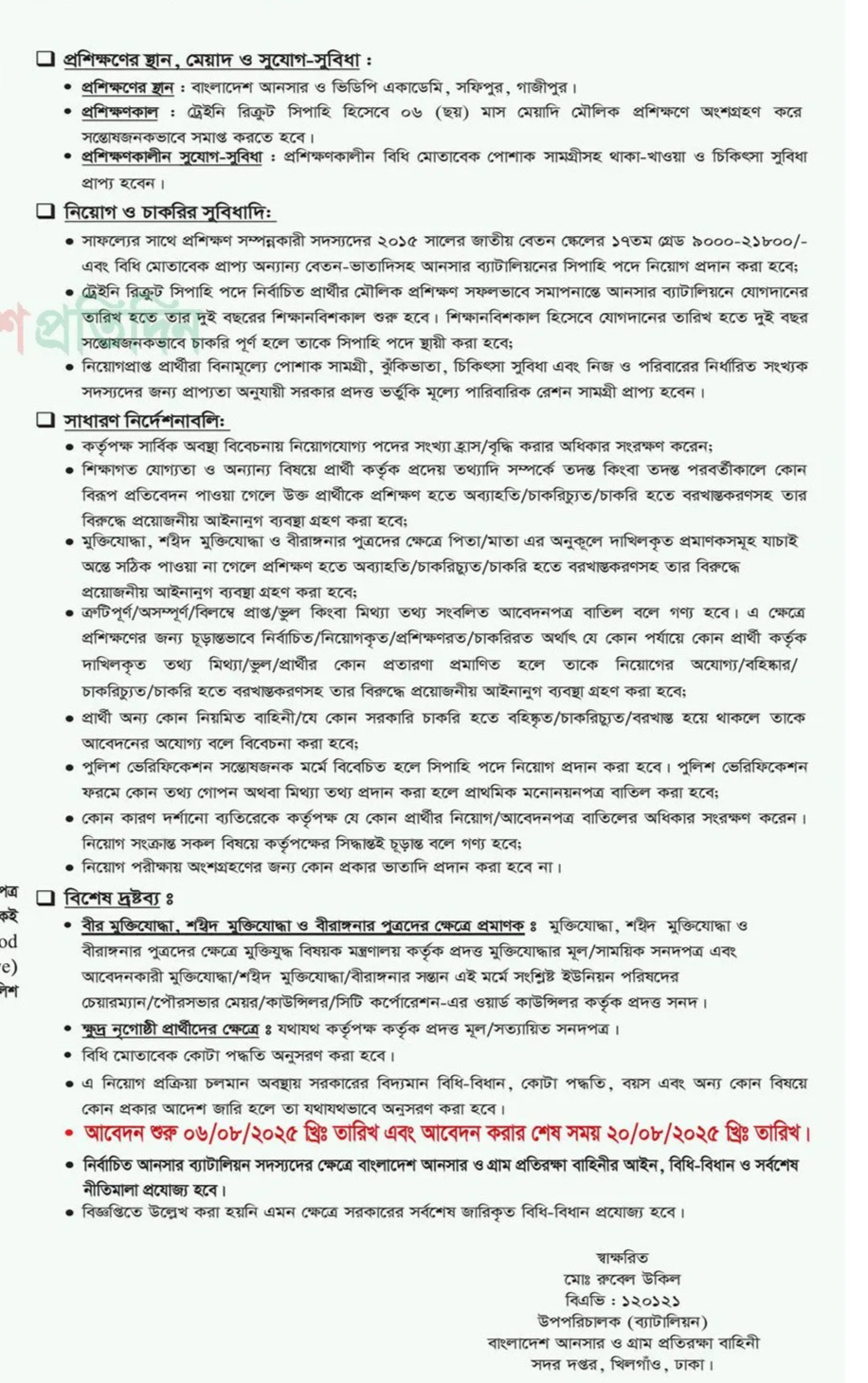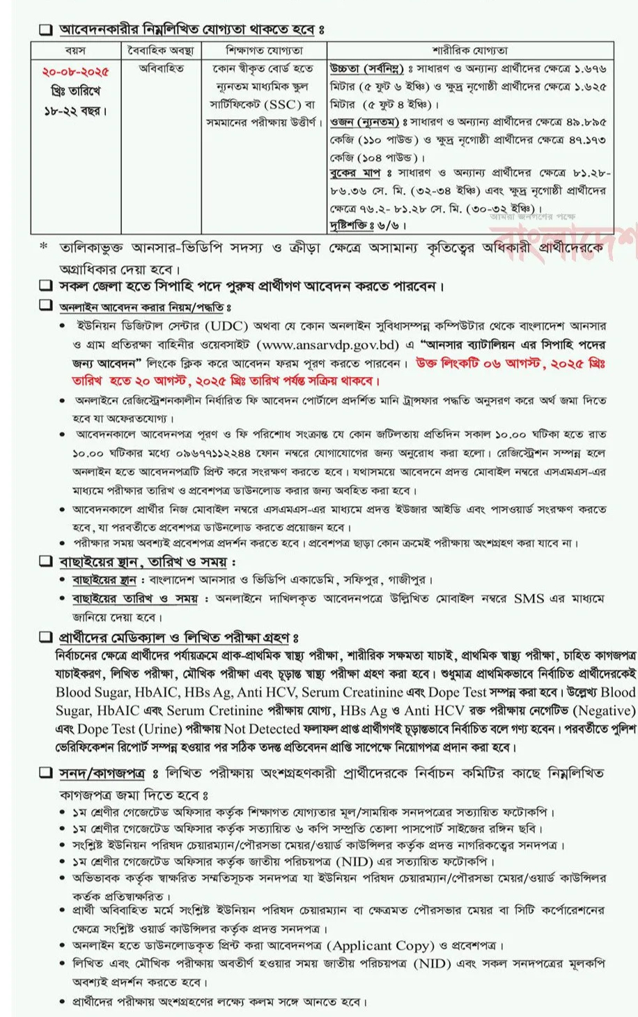 আনসার ভিডিপি নিয়োগ বিজ্ঞপ্তি ২০২৫
