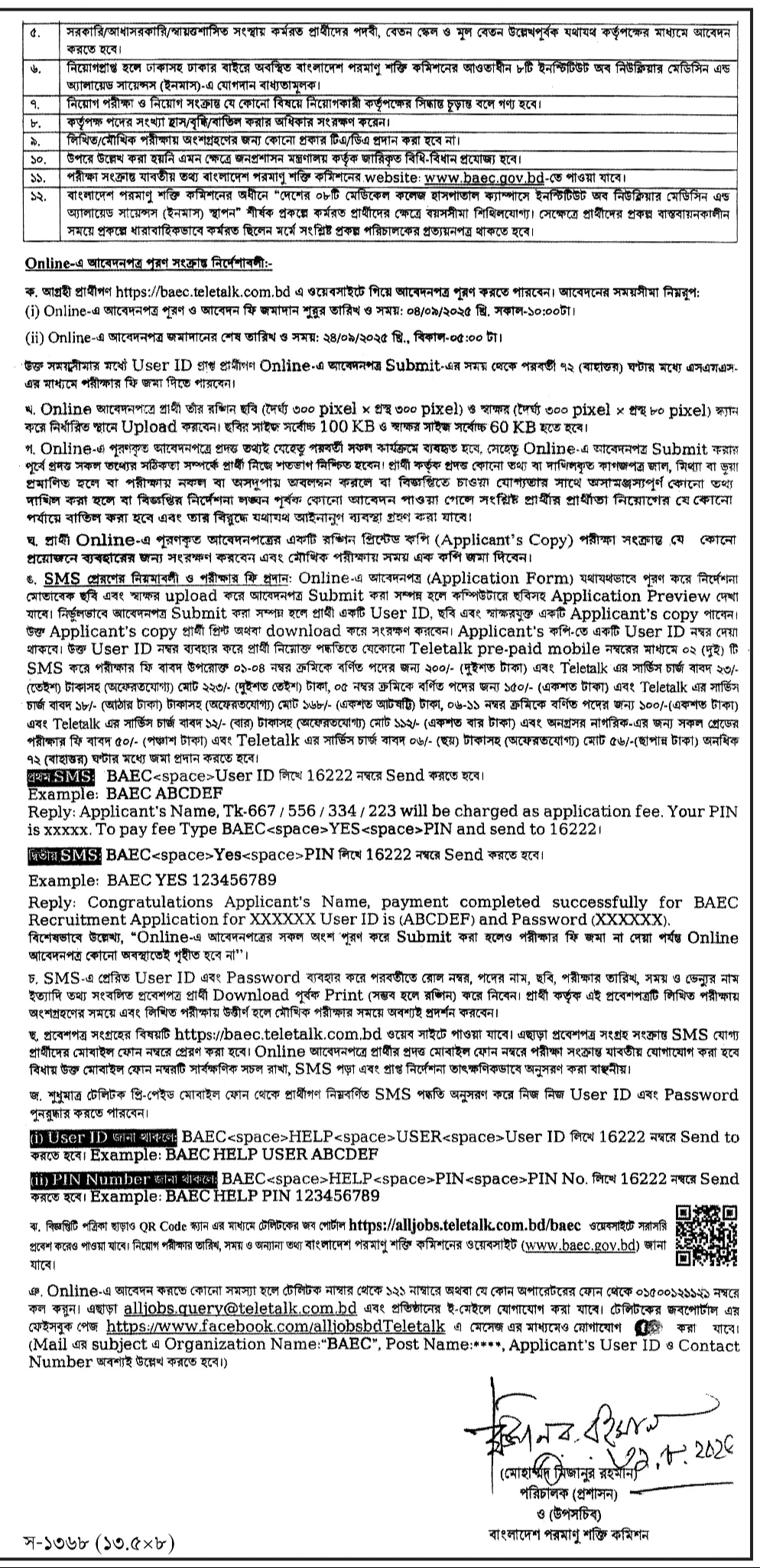বাংলাদেশ পরমাণু শক্তি কমিশন (BAEC) – SMS প্রেরণ ও ফি প্রদান পদ্ধতি