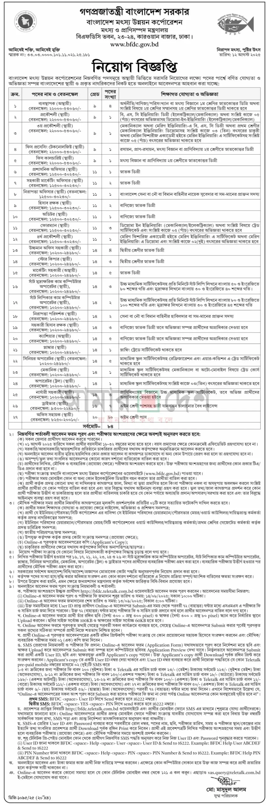- নিয়োগকর্তার নাম: বাংলাদেশ মৎস্য উন্নয়ন কর্পোরেশন (BFDC)