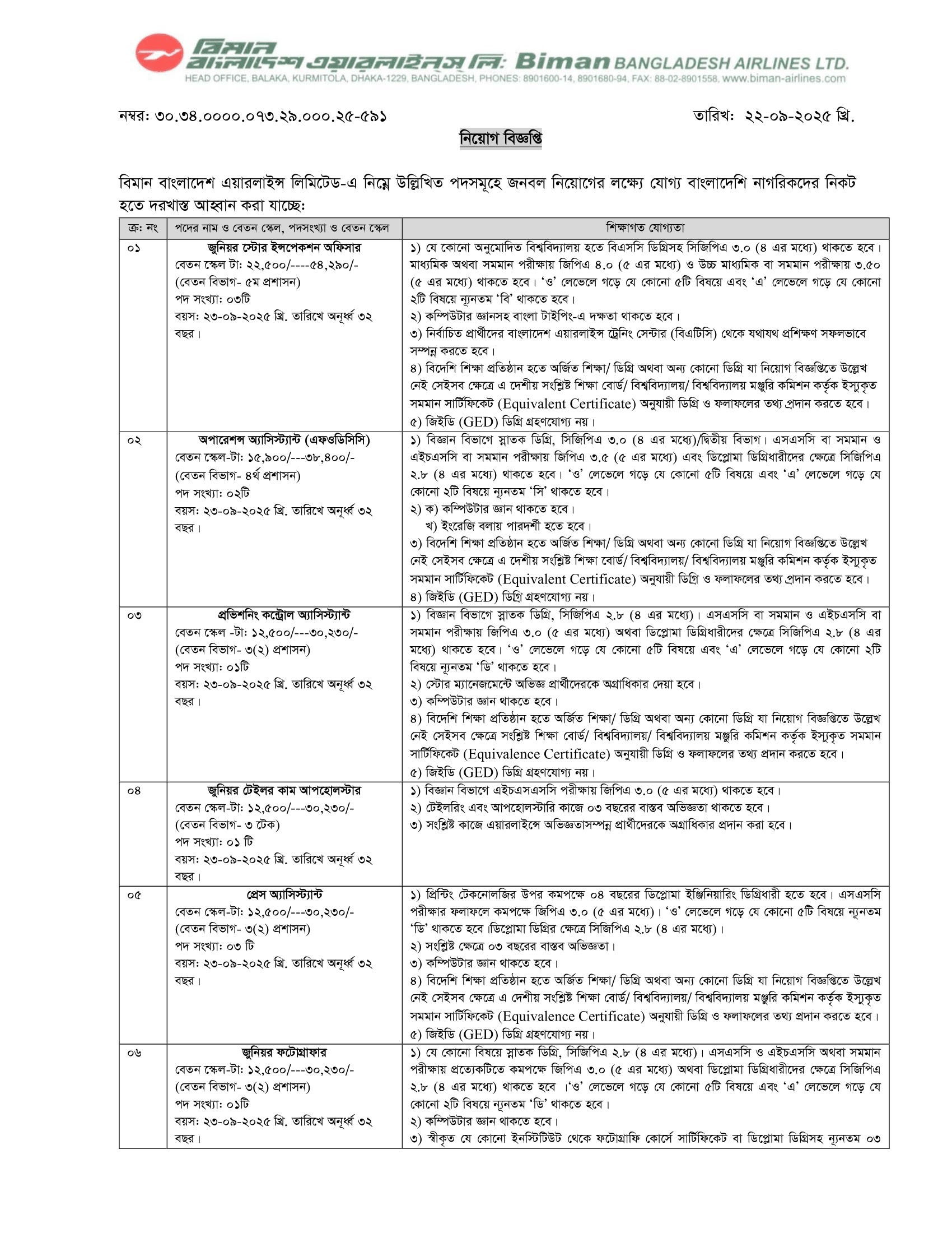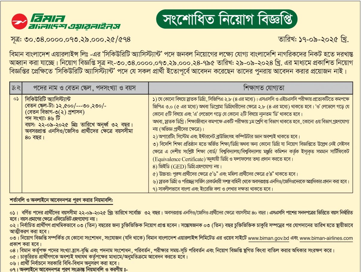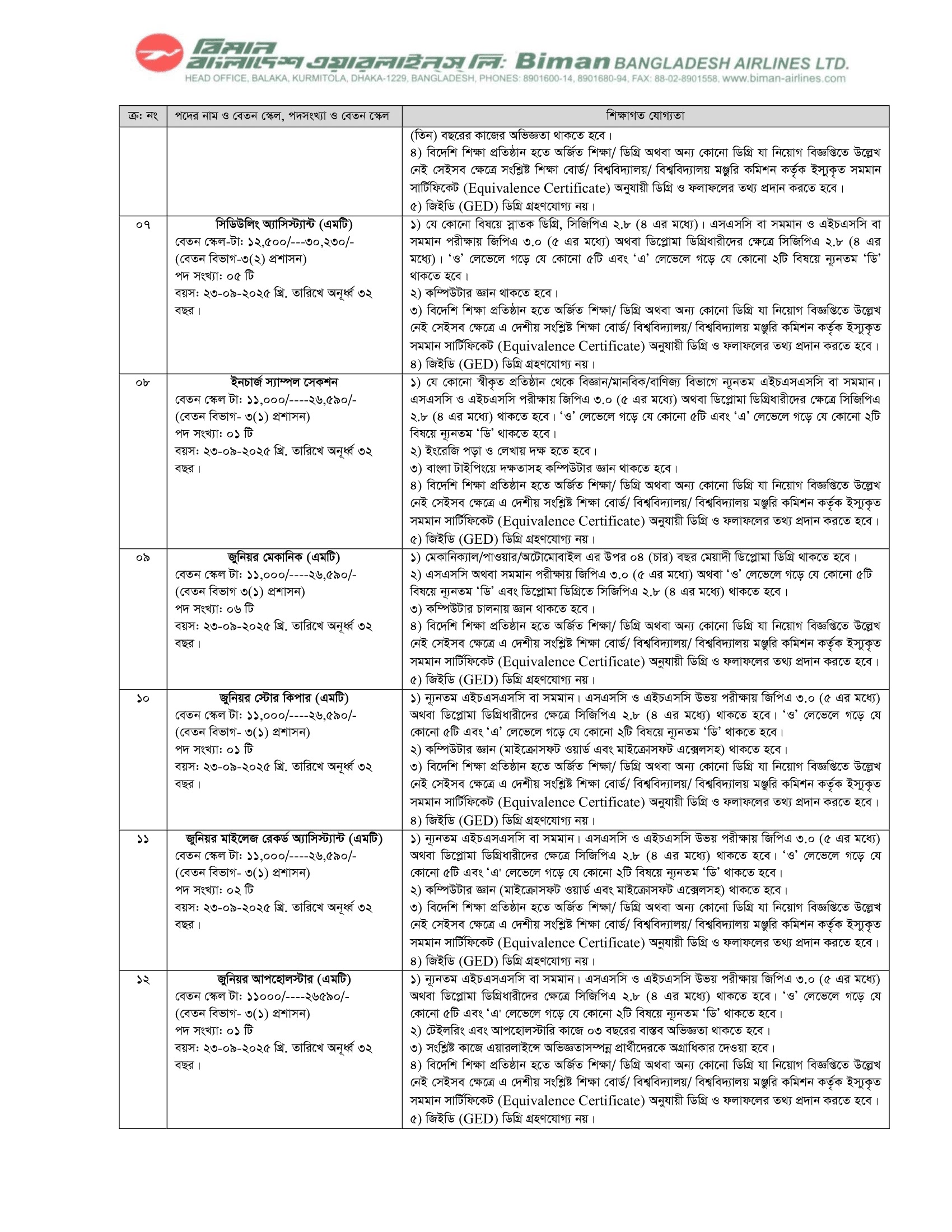 বিমান বাংলাদেশ এয়ারলাইন্স নিয়োগ বিজ্ঞপ্তি ২০২৫