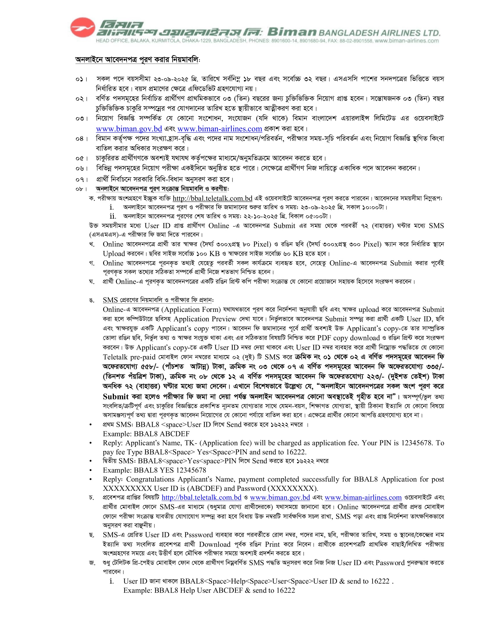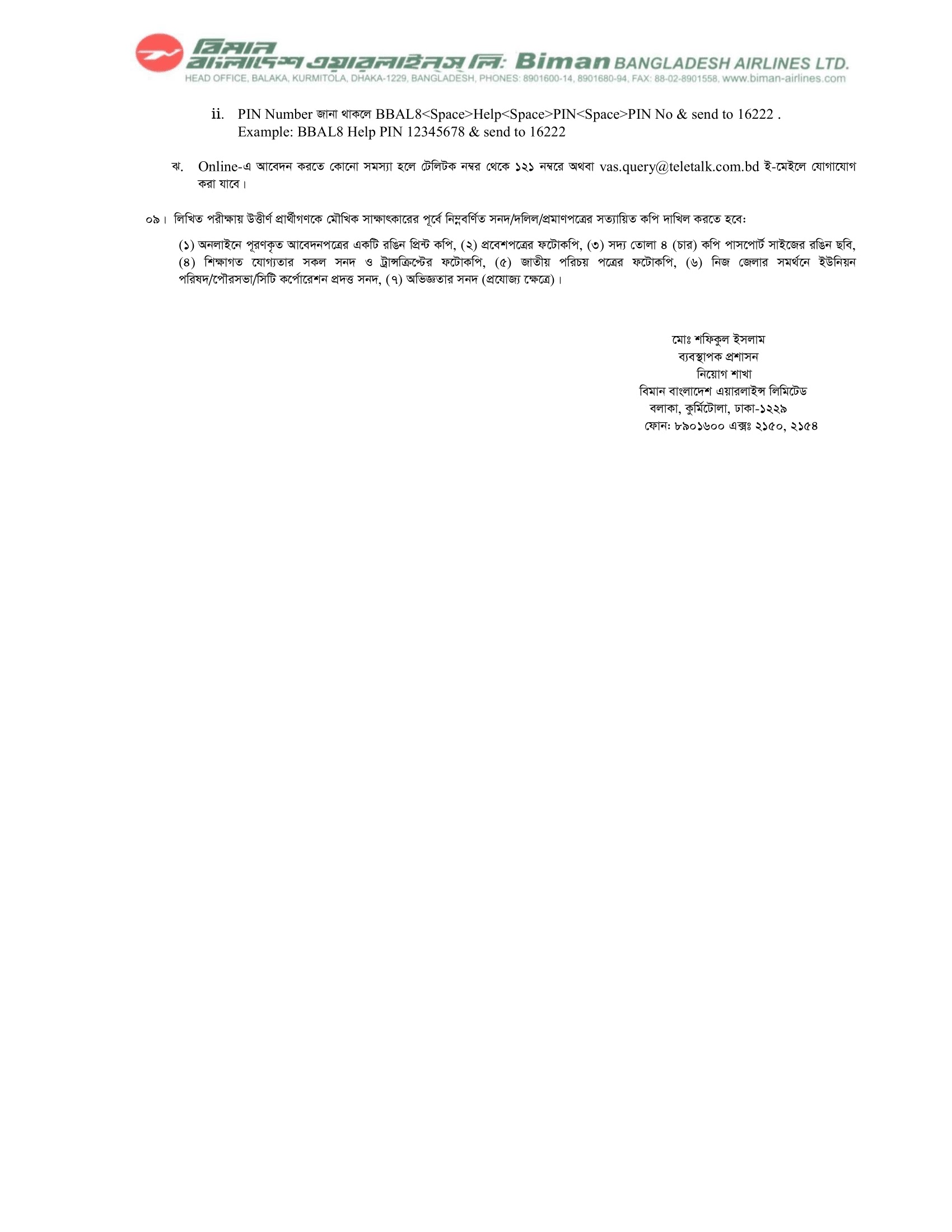 - বিমান বাংলাদেশ এয়ারলাইন্সের নির্ধারিত আবেদনপত্র পূরণ করতে হবে।
