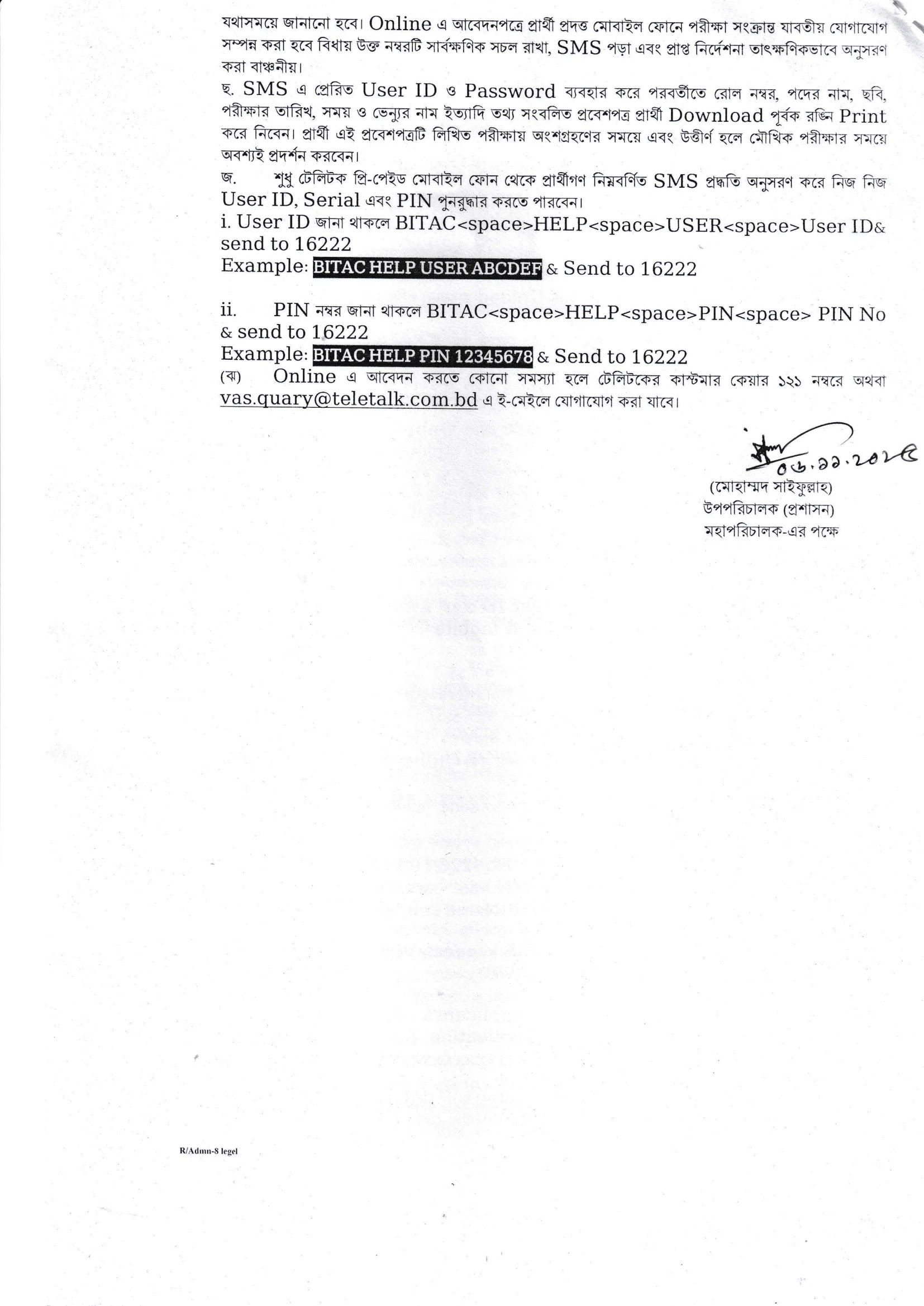 | আবেদন করার মাধ্যমঃ | http://bitac.teletalk.com.bd/ |