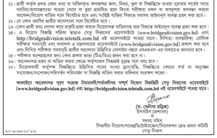 আবেদনের জন্য http://bridgesdivision.teletalk.com.bd ওয়েবসাইটে প্রবেশ করুন।