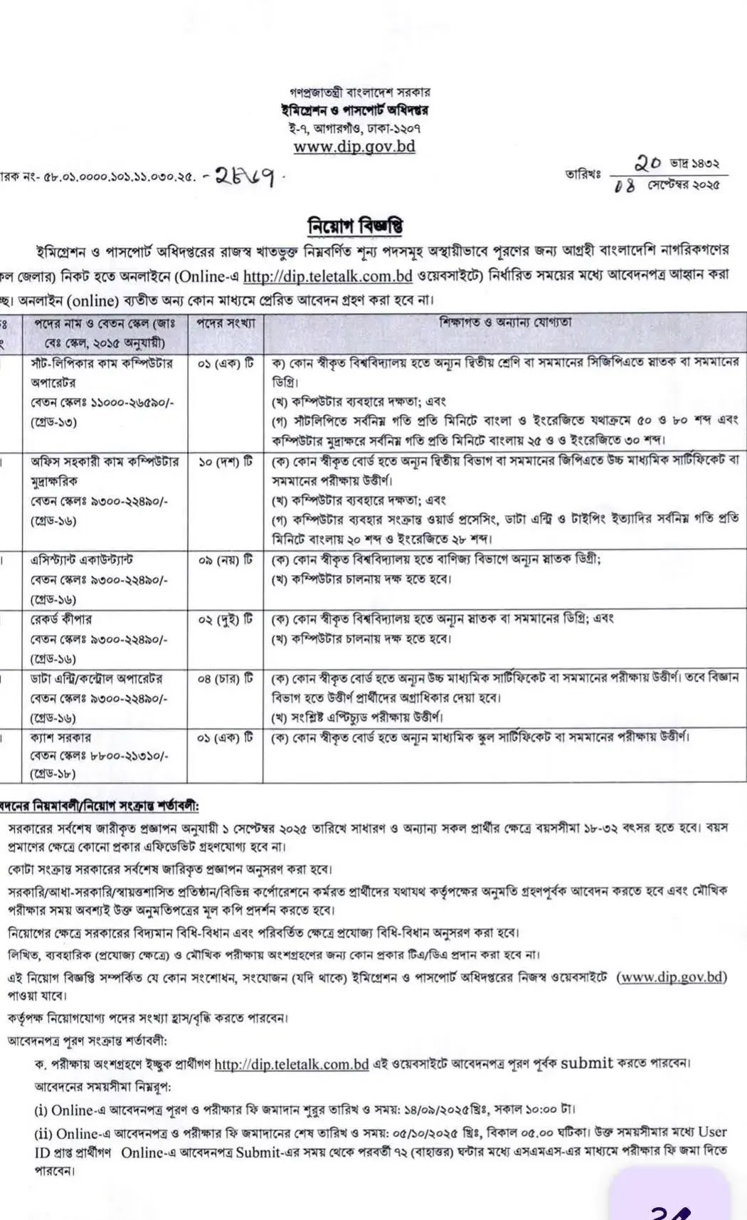 ইমিগ্রেশন ও পাসপোর্ট অধিদপ্তর নিয়োগ বিজ্ঞপ্তি ২০২৫ DIP Job Circular 2025