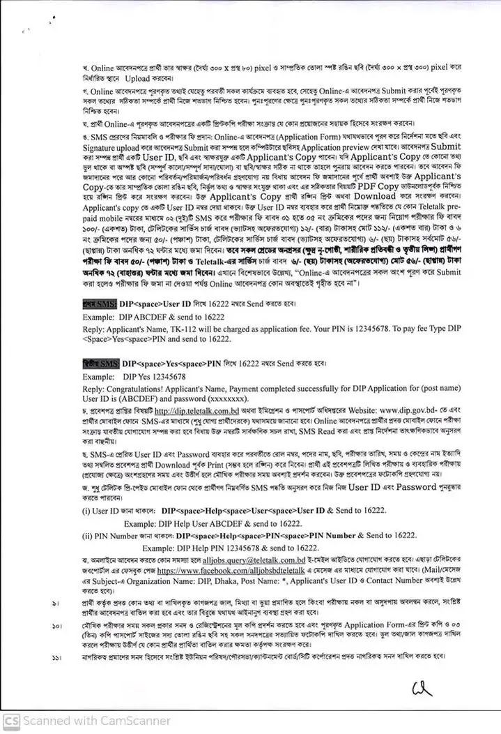 | আবেদন ওয়েবসাইট | https://dip.teletalk.com.bd |