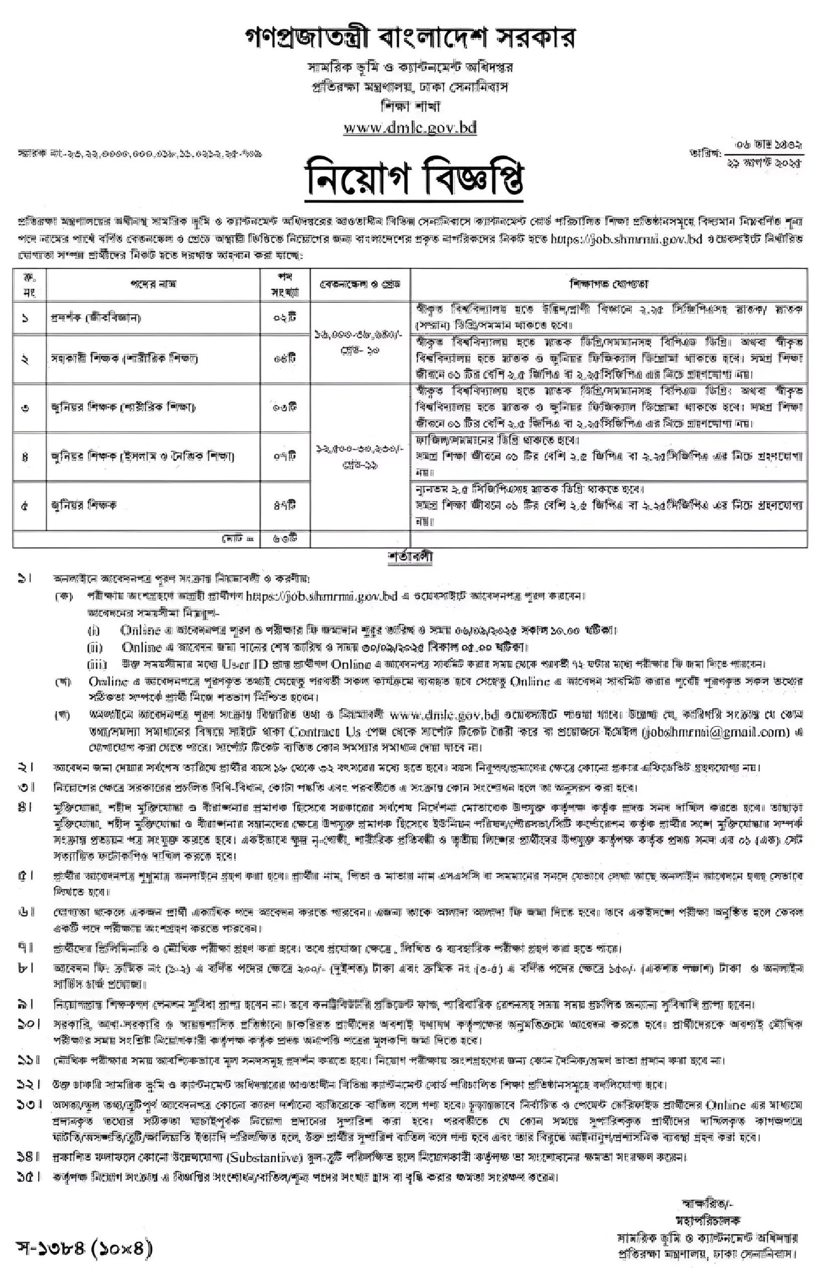 সামরিক ভূমি ও ক্যান্টনমেন্ট অধিদপ্তর (DMLC) নিয়োগ বিজ্ঞপ্তি ২০২৫ চাকরিপ্রার্থীদের জন্য একটি সম্মানজনক সরকারি চাকরির সুযোগ।