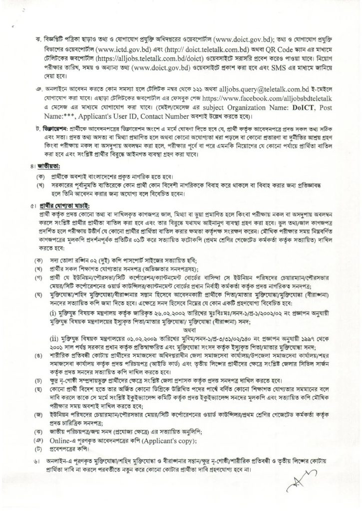 আবেদন করতে হবে অনলাইনে doict.teletalk.com.bd