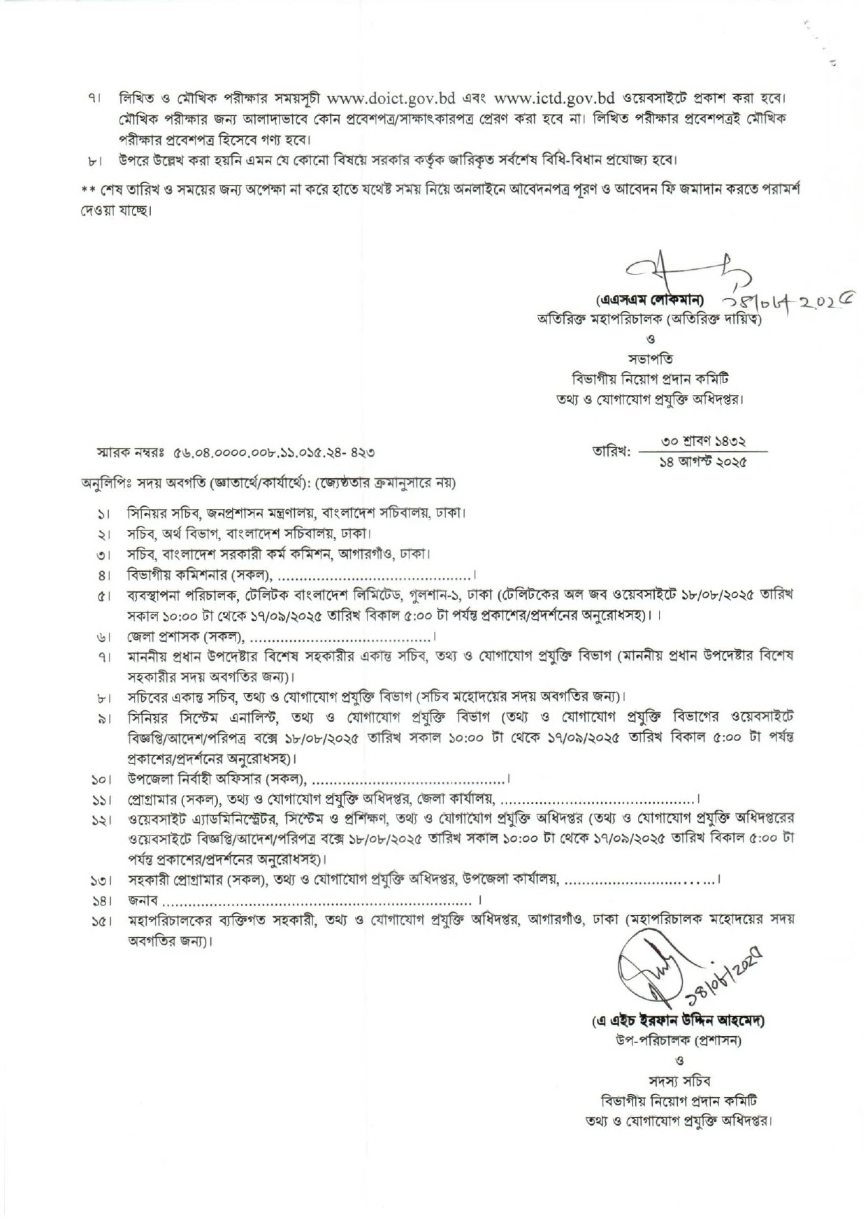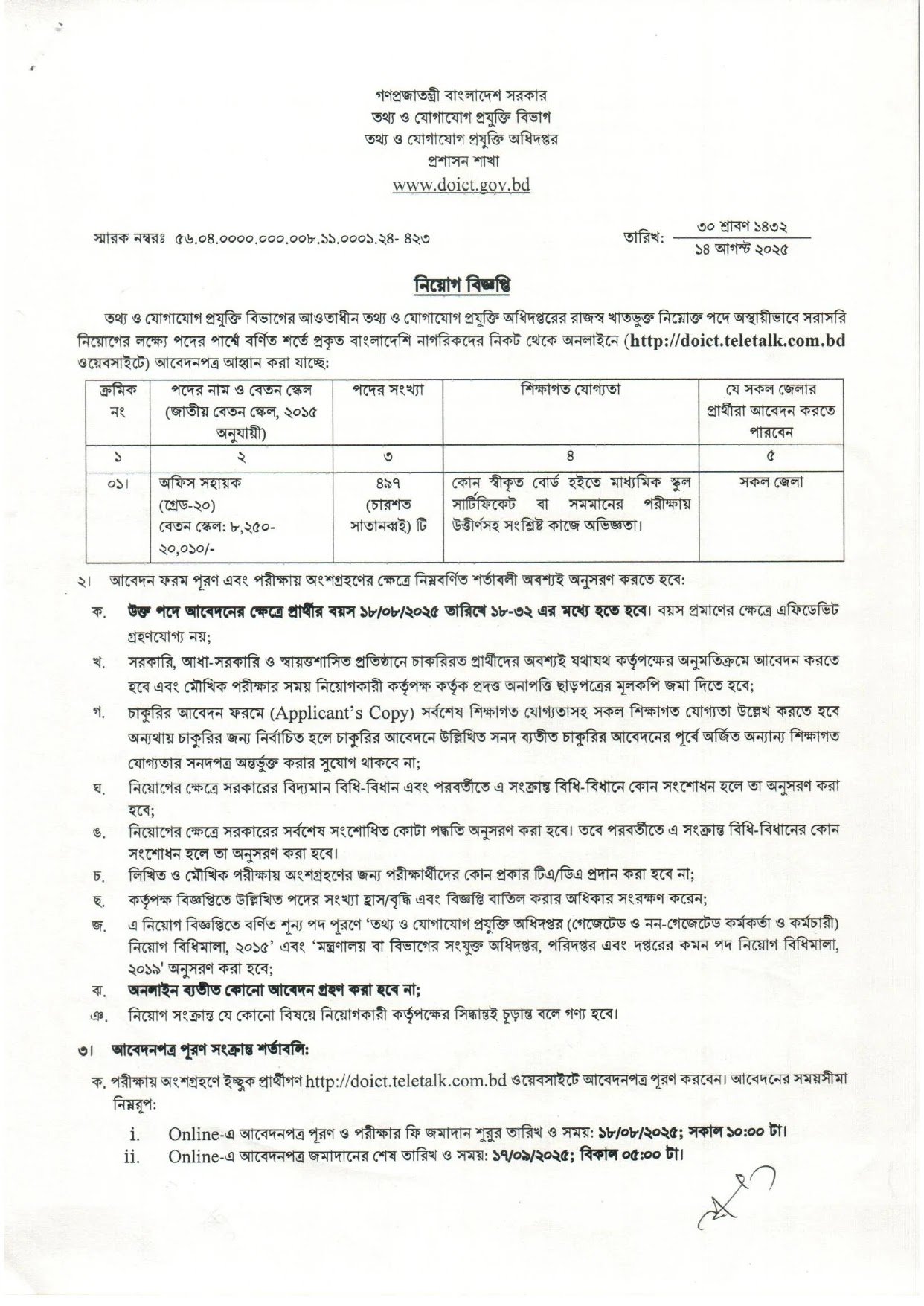 | বিজ্ঞপ্তি প্রকাশঃ | ১৭ আগস্ট ২০২৫ ইং। |