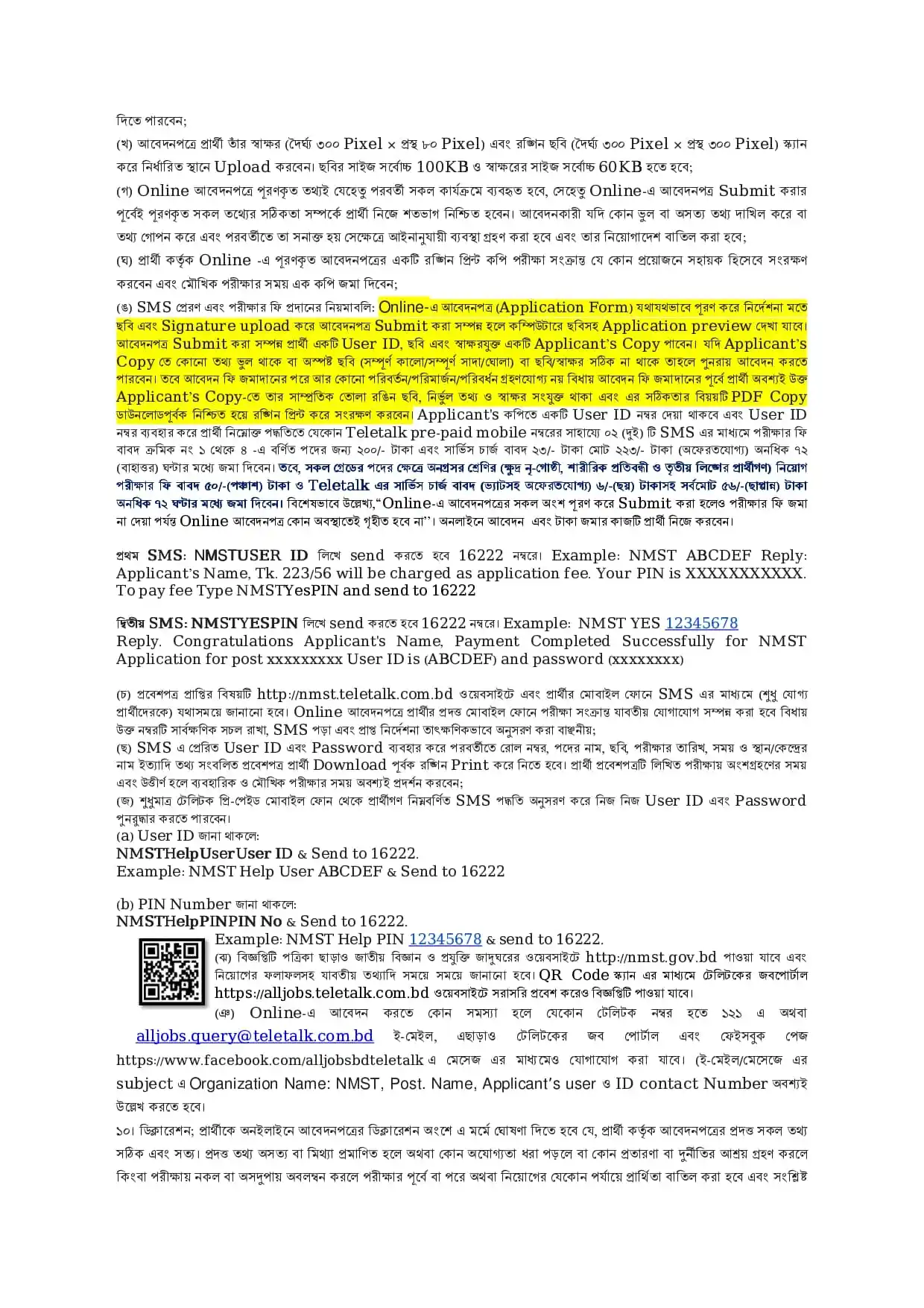 NMST Job Application Fee Payment Method
