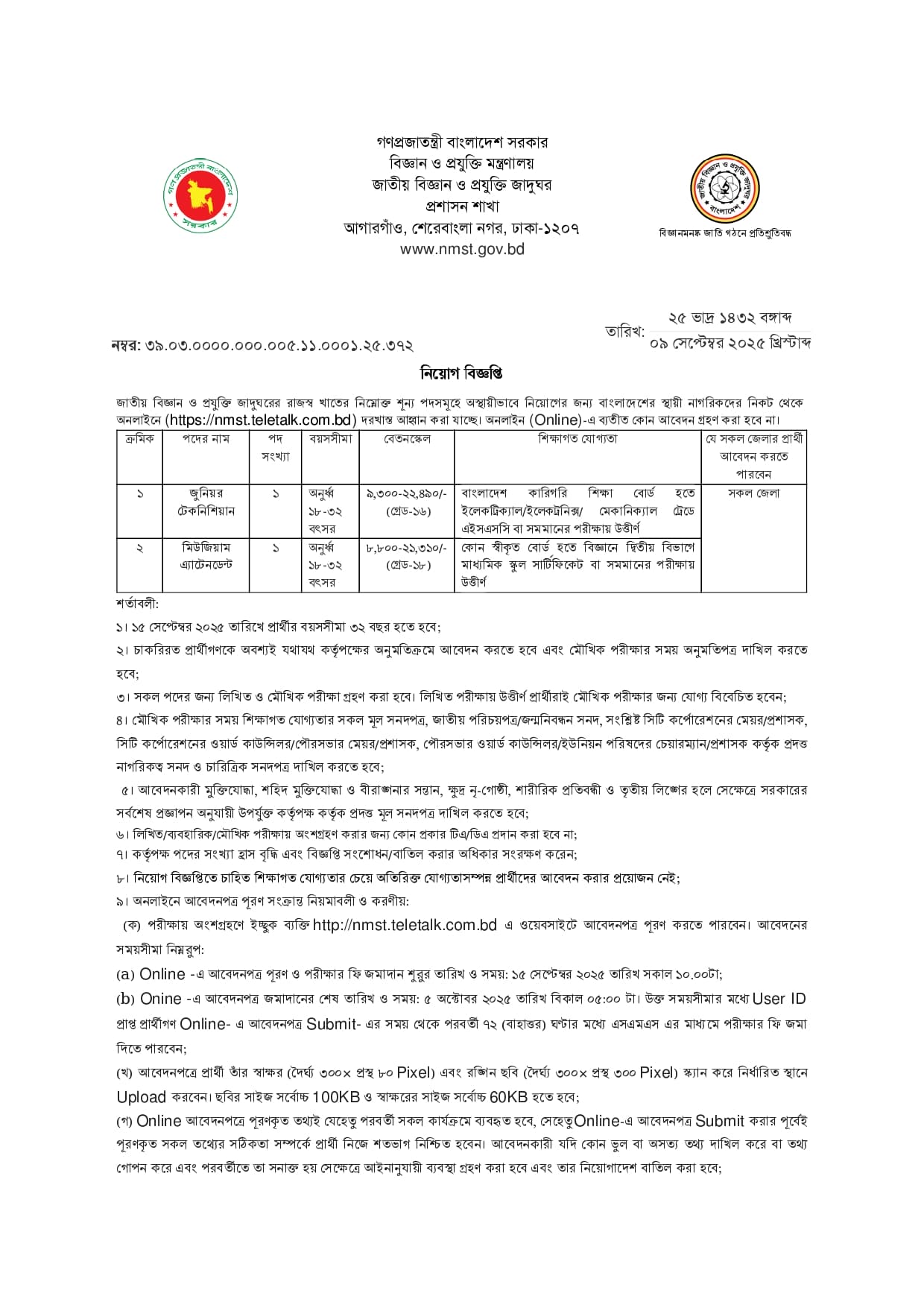 National Museum Of Science and Technology Job Circular 2025