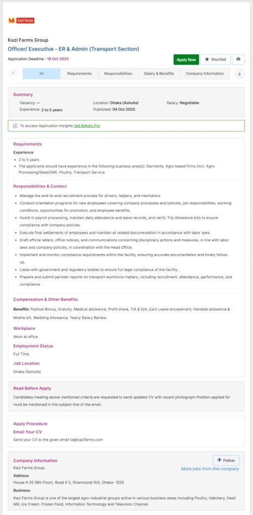 Kazi Farms Group Job Circular 2025 October 5, 2025 by Fahmida Afrose Kazi Farms Group is a diversified agro-industrial conglomerate in Bangladesh, primarily focused