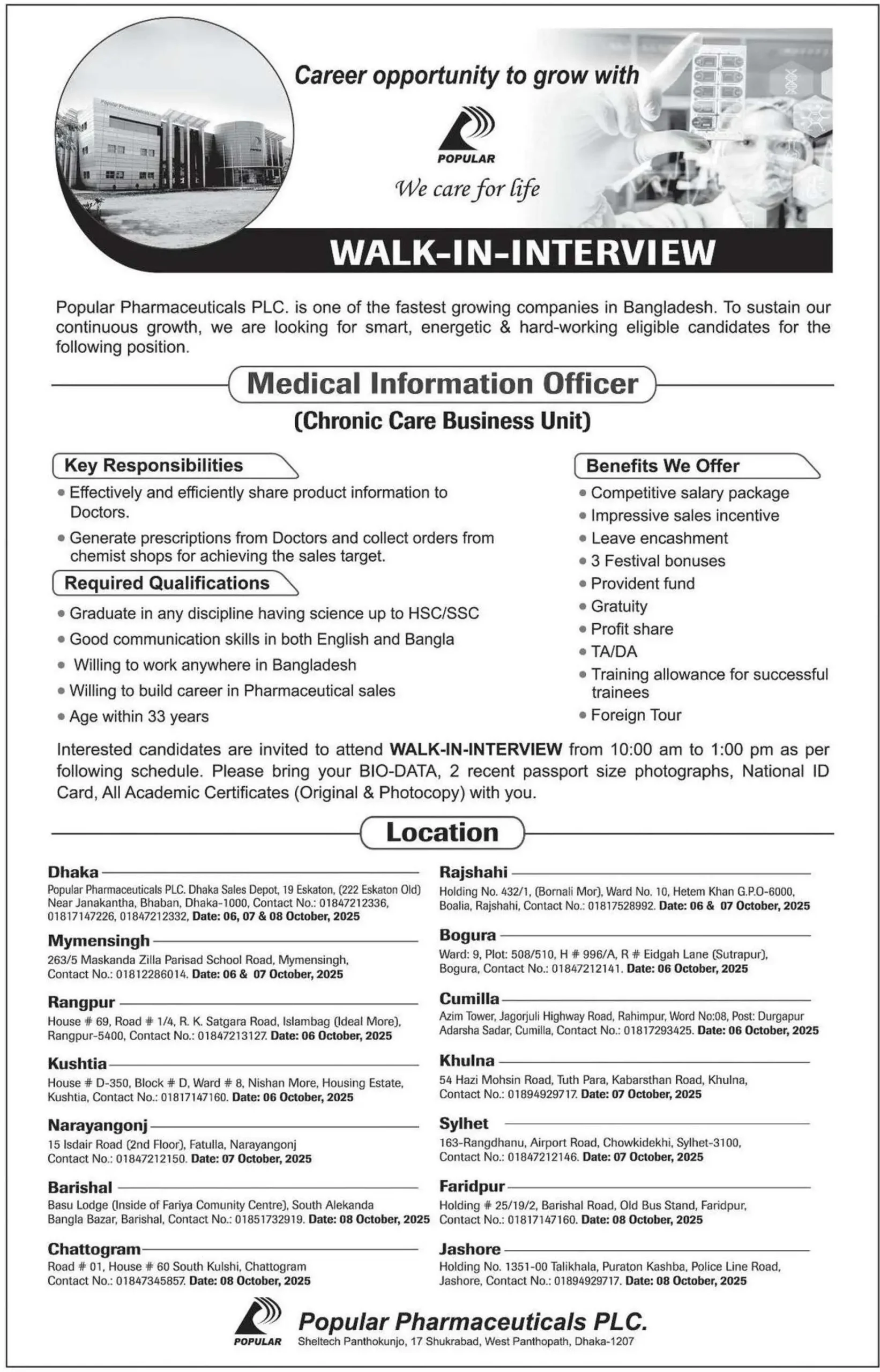 | Popular Pharmaceuticals Ltd. Job Circular 2025 | |