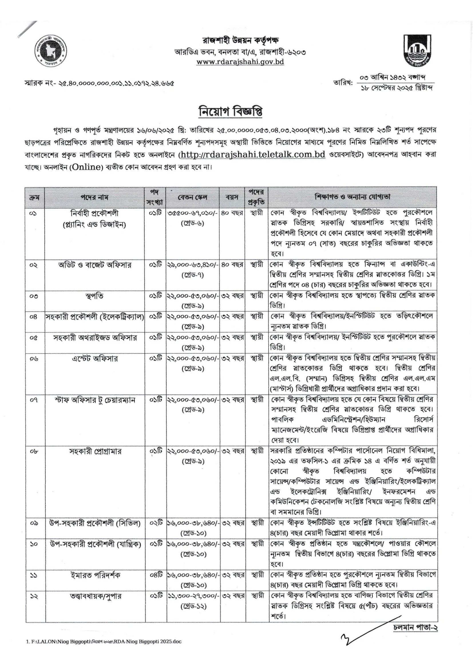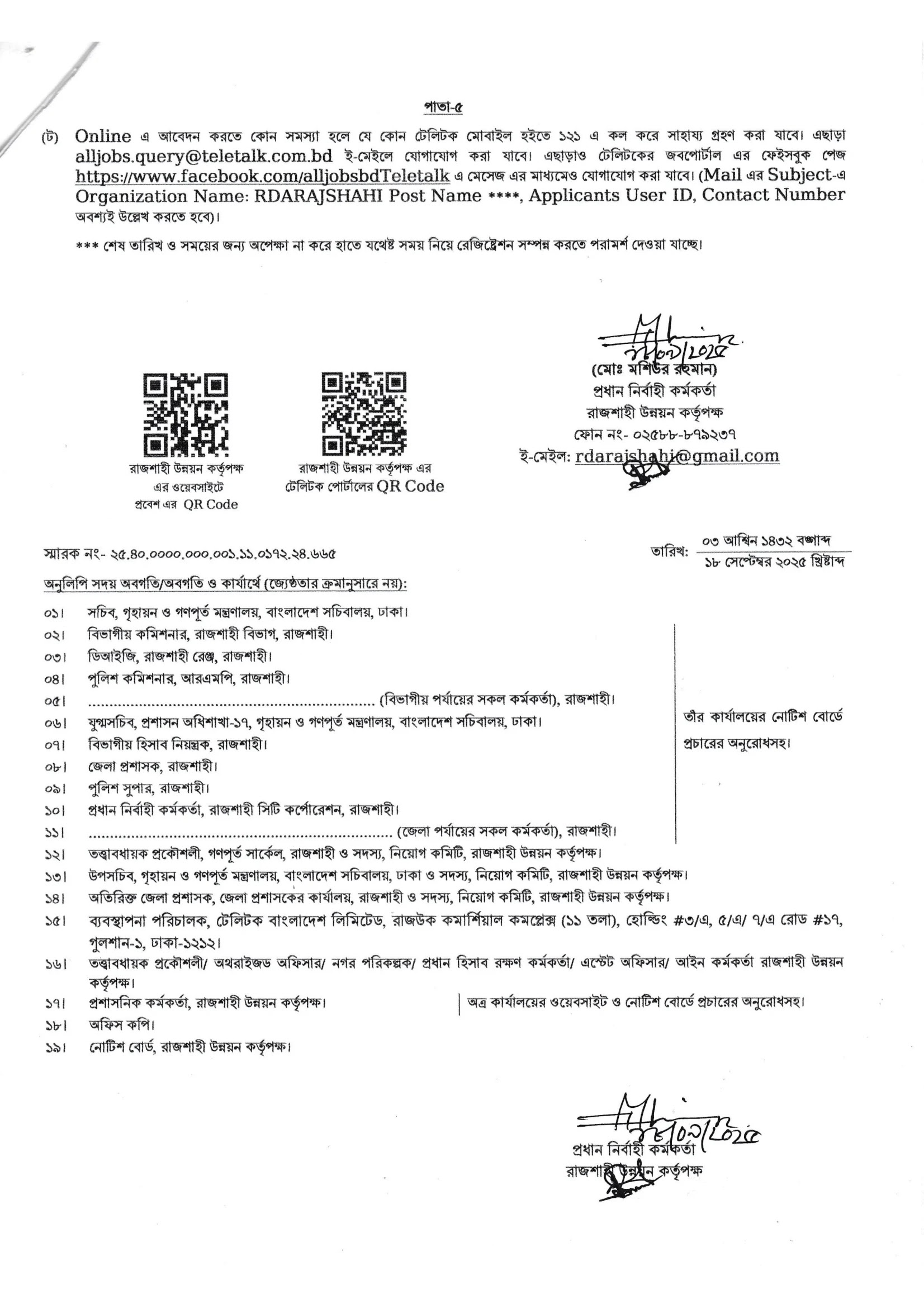 ওয়েবসাইট: http://rdarajshahi.teletalk.com.bd