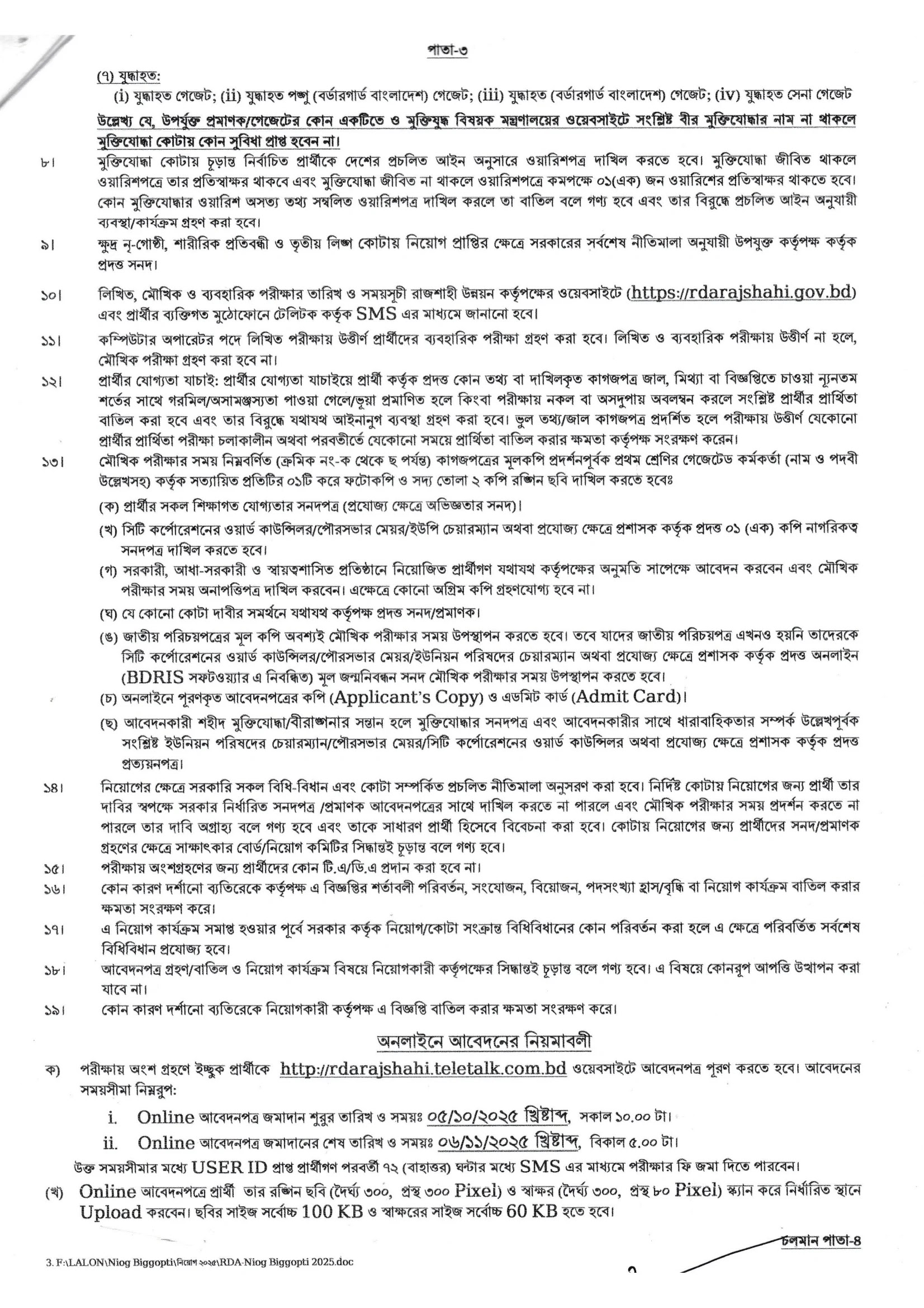 RDA Job Circular 2025 আবেদনের নিয়মাবলী ও প্রক্রিয়া