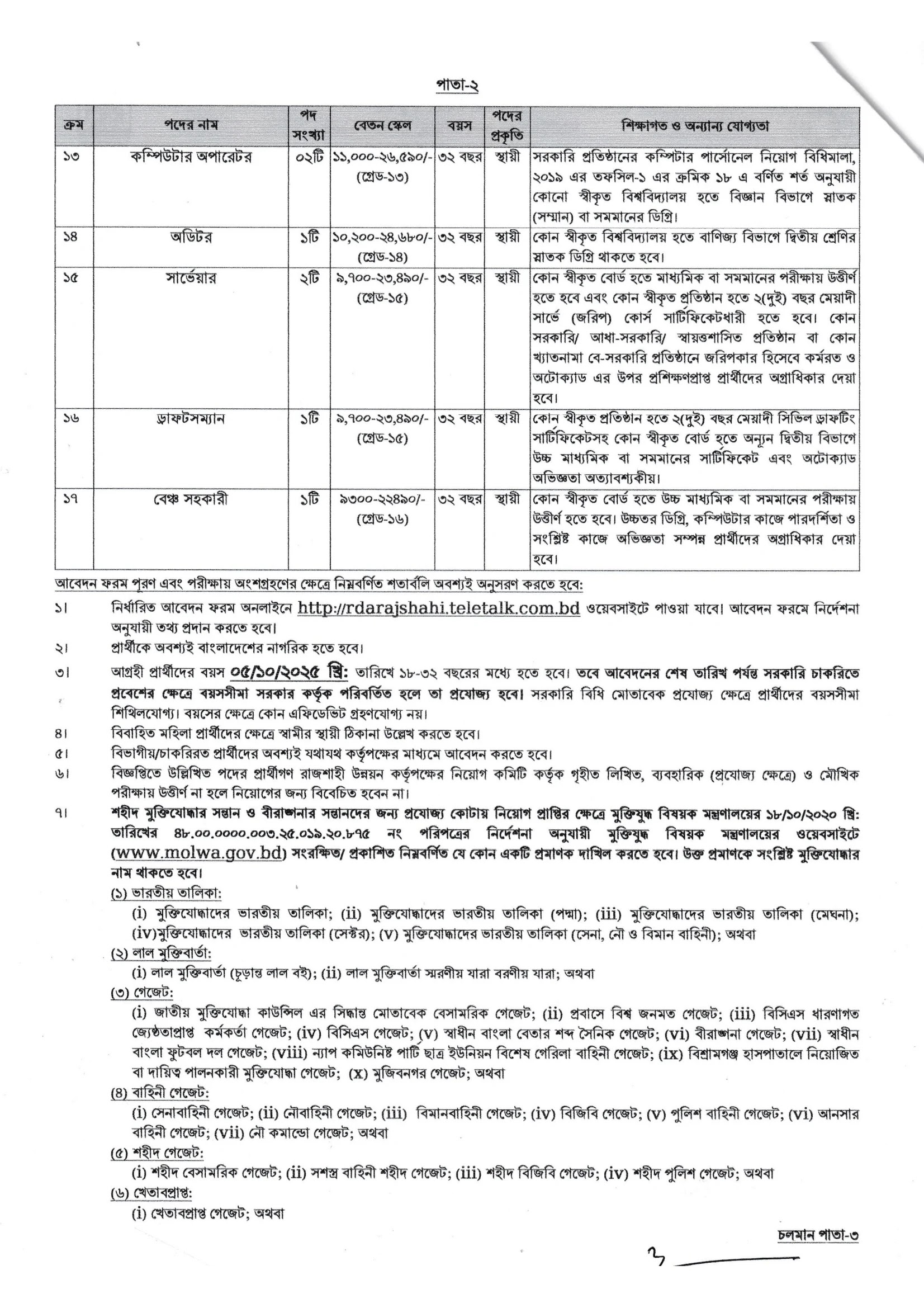 | আবেদন করার মাধ্যমঃ | https://rdarajshahi.teletalk.com.bd/ |