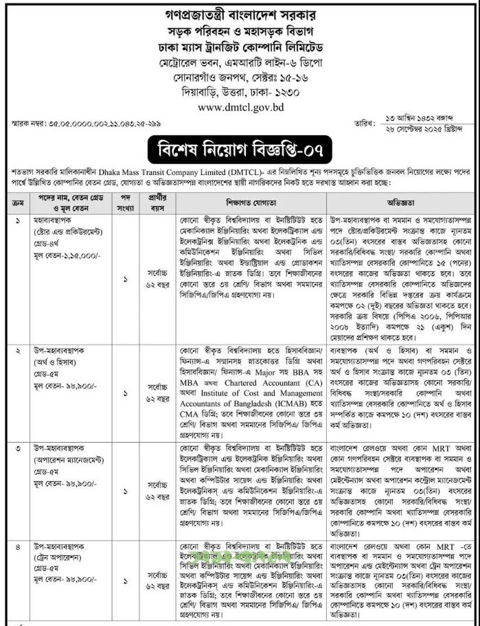 সড়ক পরিবহন ও মহাসড়ক বিভাগ নিয়োগ বিজ্ঞপ্তি ২০২৫ সম্পর্কে আরও তথ্যের জন্য: