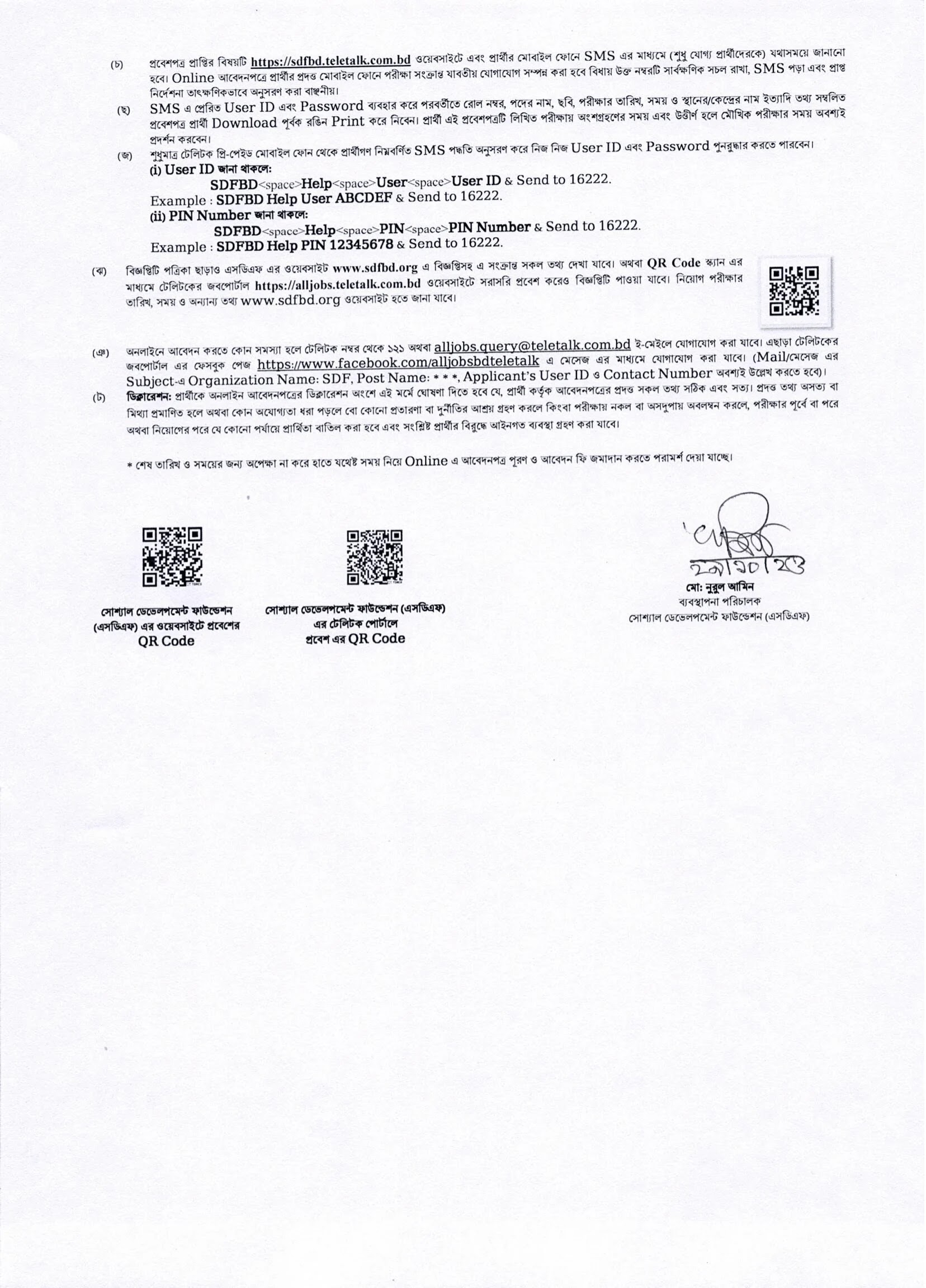 | আবেদন করার মাধ্যমঃ | http://sdfbd.teletalk.com.bd/ |